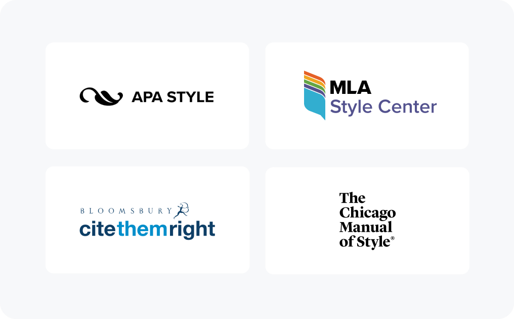 However, if you’d like to double-check your work, you can confirm your formatting is correct using the MLA Handbook, Chicago Manual of Style, Harvard University’s website, the Official Guide to APA Style, or any other official guide for the citation format of your choosing.