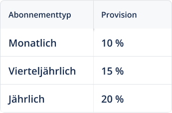 Mit QuillBot sind deinem monatlichen Einkommen keine Grenzen gesetzt. Profitiere von attraktiven Provisionen von bis zu 20 € pro Abonnent.
