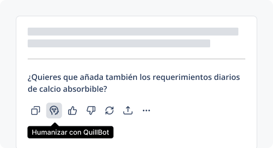 El humanizador de IA de QuillBot está diseñado para ayudarte a transformar textos generados por IA en lenguaje más natural y humano, mejorando el tono, la claridad y la fluidez. Puedes usarlo para humanizar contenido generado con ChatGPT o cualquier otra herramienta de IA y conseguir que suene más auténtico y atractivo.
