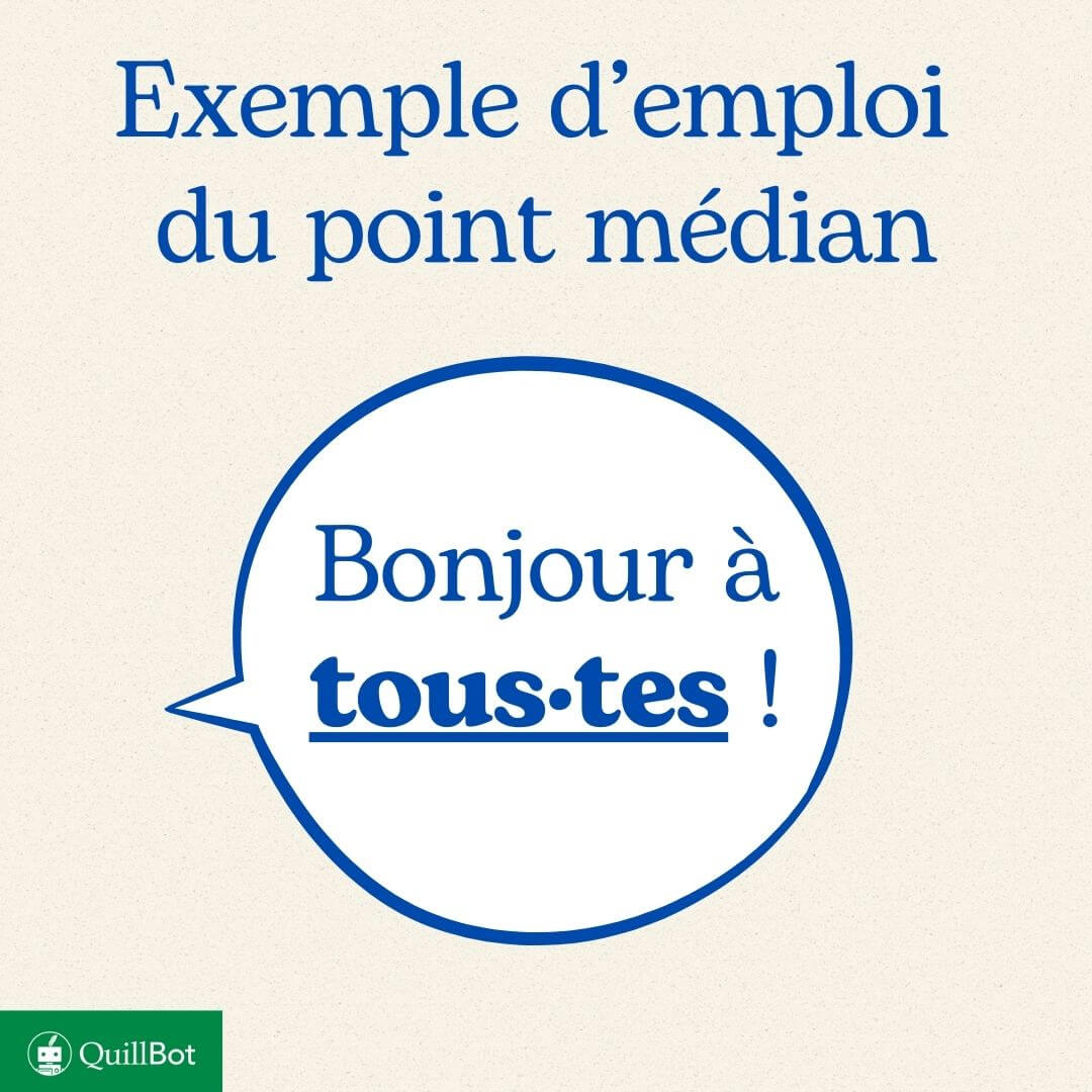 Tihay, L. (21 novembre 2025). Le point médian : mode d’emploi et exemples. Quillbot. Date : 9 avril 2026, issu de l’article suivant : https://quill.cosmictools.in/fr/blog/ponctuation/point-median/