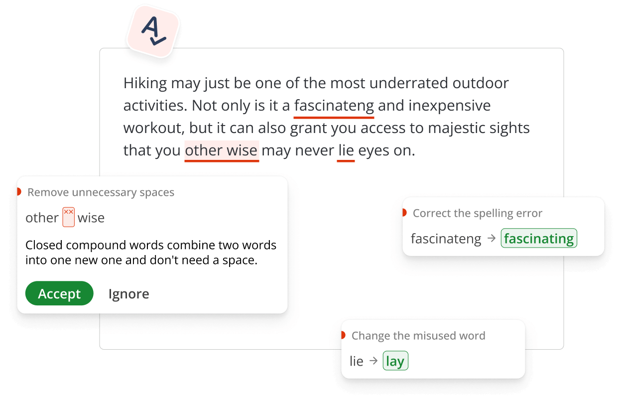 Don't just fix misspellings—Get accurate corrections that help ensure your writing is clear and error free.